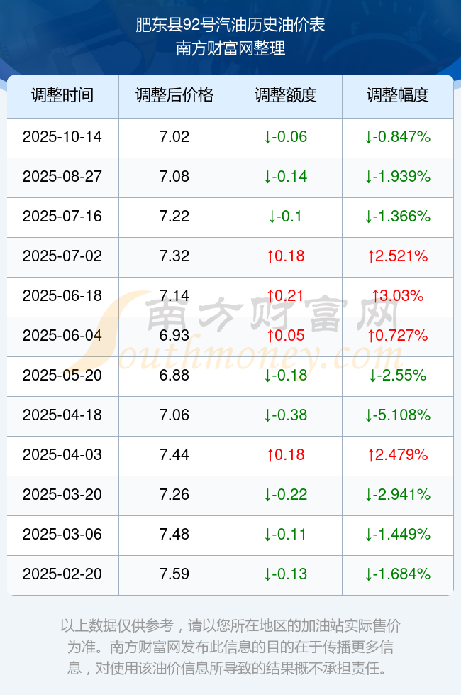 10月14日肥东县92号汽油价格查询(每升多少钱)
