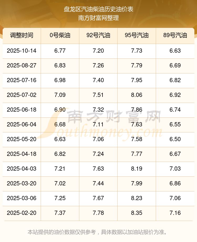 盘龙区油价查询_10月14日92号、95号汽油价格一览表