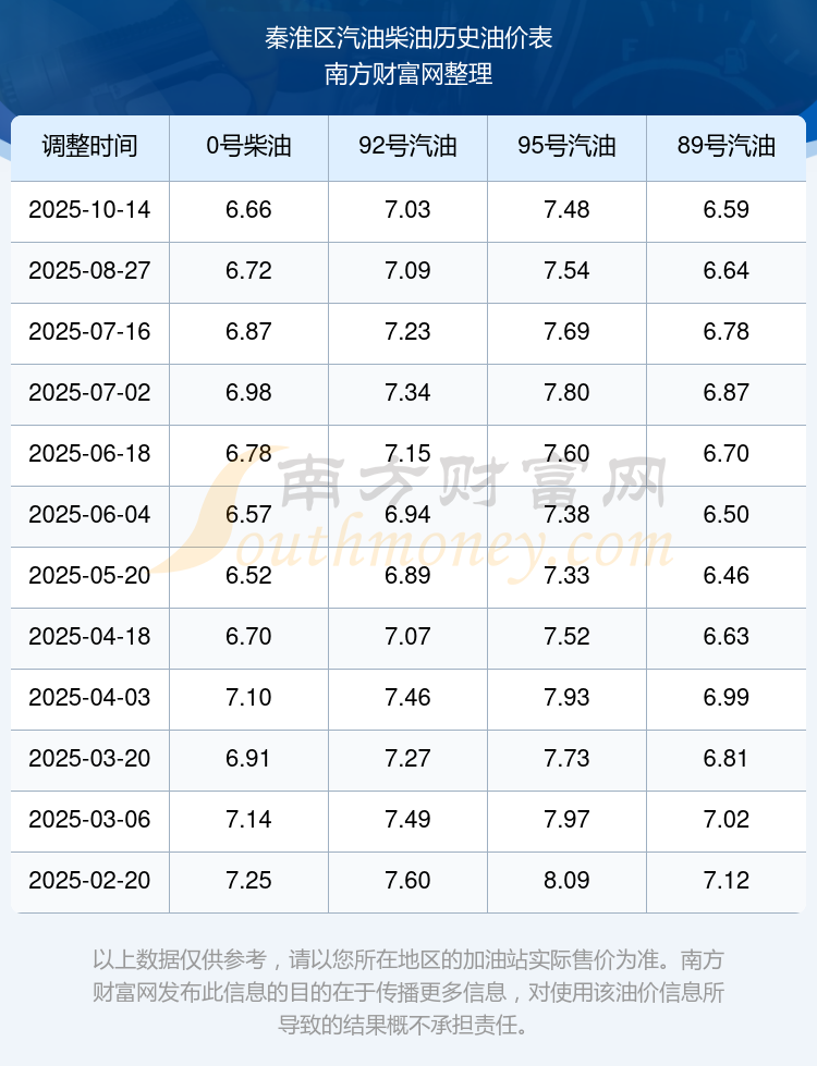 秦淮区今日油价_10月14日秦淮区油价一览表
