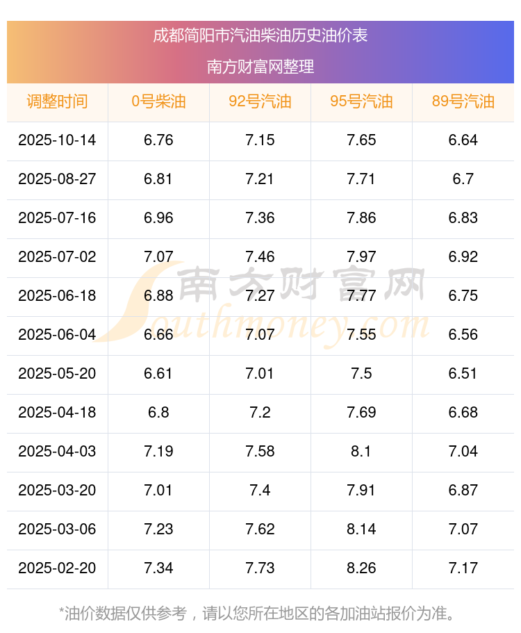 成都简阳市汽油柴油油价,今日汽油柴油价格查询(10月14日)
