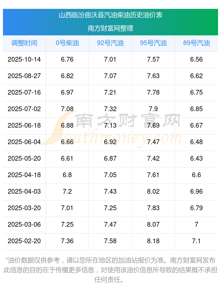 山西临汾曲沃县今日油价查询_10月14日山西临汾曲沃县汽油价格一览表