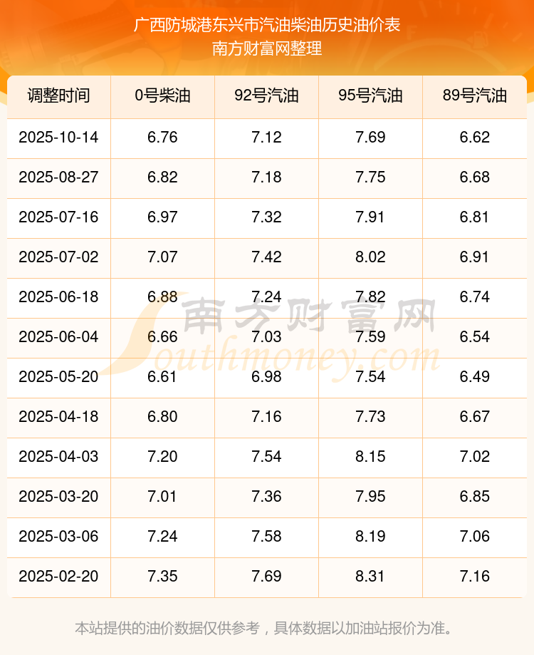 今日广西防城港东兴市油价,广西防城港东兴市汽油价格查询(10月14日)