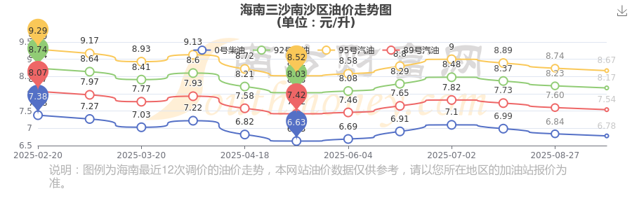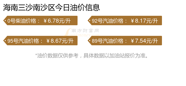 10月14日海南三沙南沙区92号、95号汽油价格(多少钱一升)