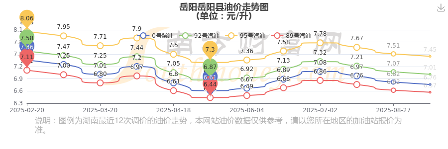岳阳岳阳县油价今日价格:10月14日汽油价格一览表