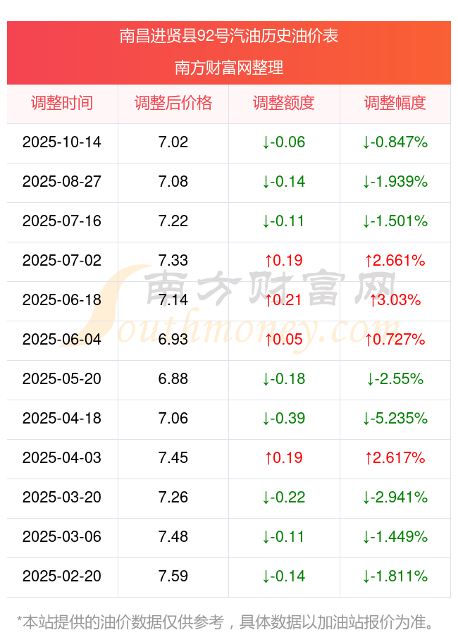 10月14日南昌进贤县92号汽油油价多少钱一升(今日油价查询)