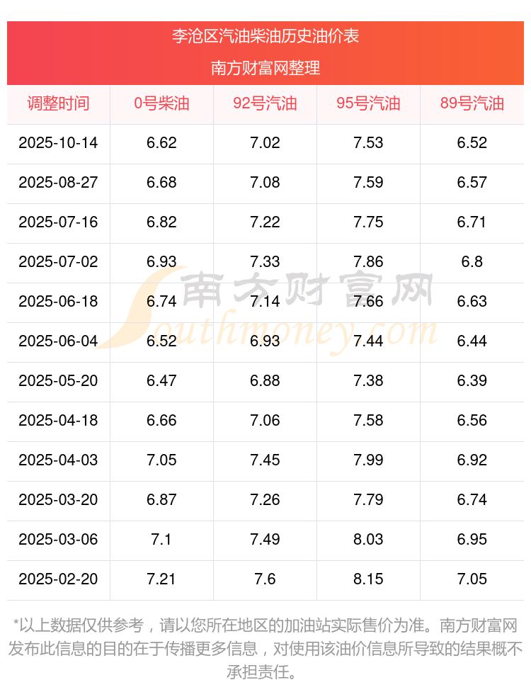 李沧区今日油价多少钱一升_今天的汽油价格查询(10月14日)