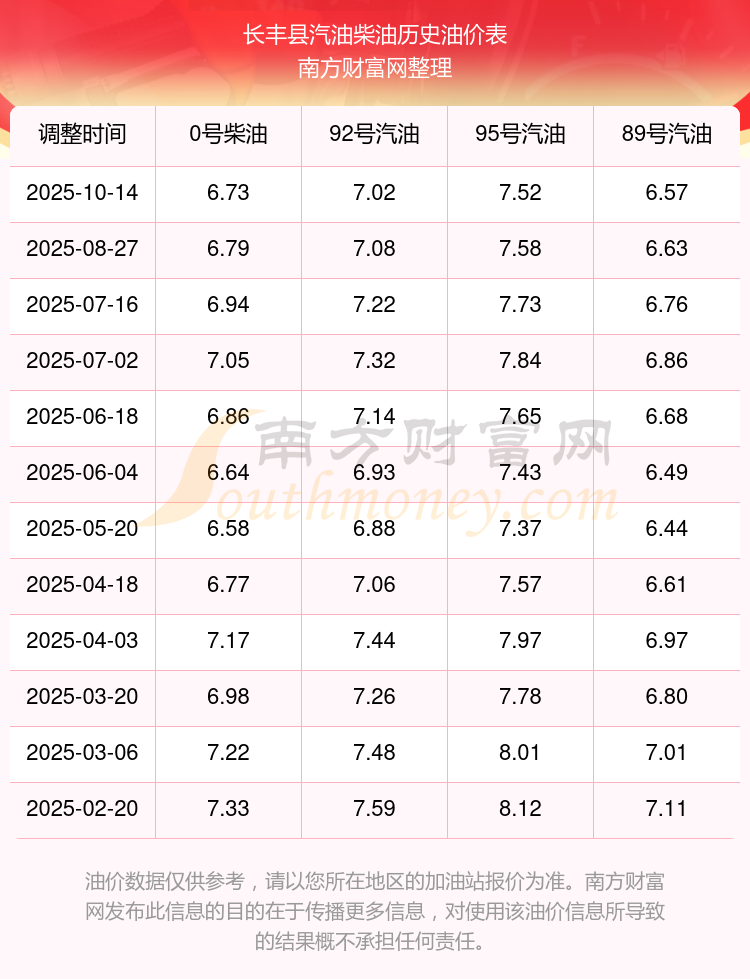 西沙区油价今日价格表(10月14日西沙区油价查询)