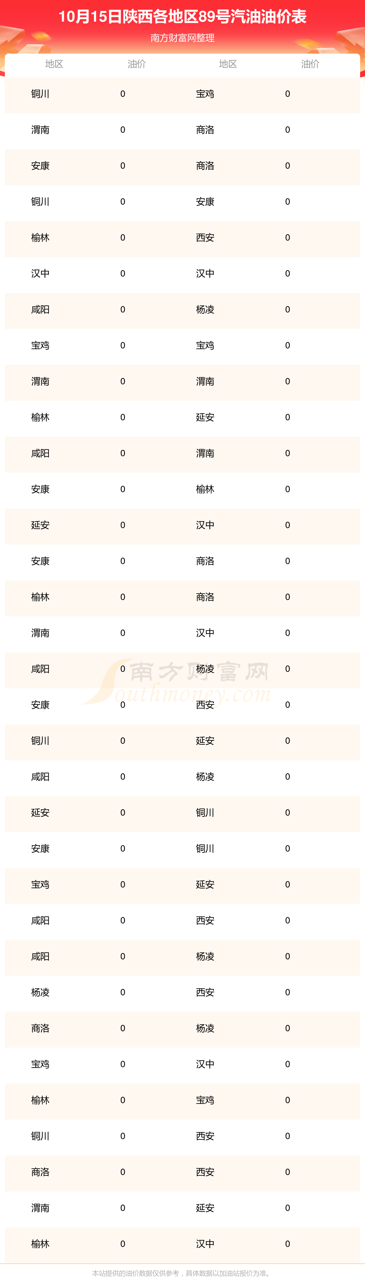 10月14日全国最新油价调整信息:10月14日调整后的89号汽油最新价格