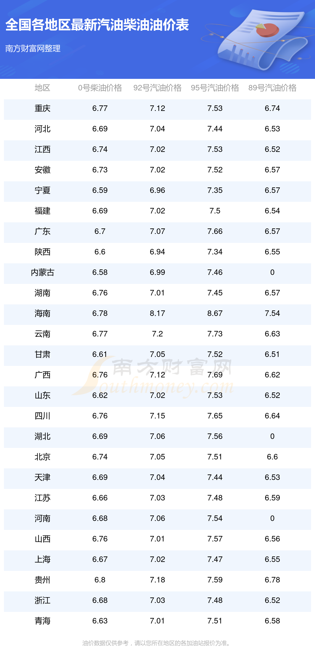 本站提供的油价数据仅供参考,具体数据以加油站报价为准。