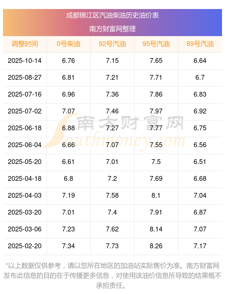 成都锦江区油价查询_10月15日92号、95号汽油价格一览表