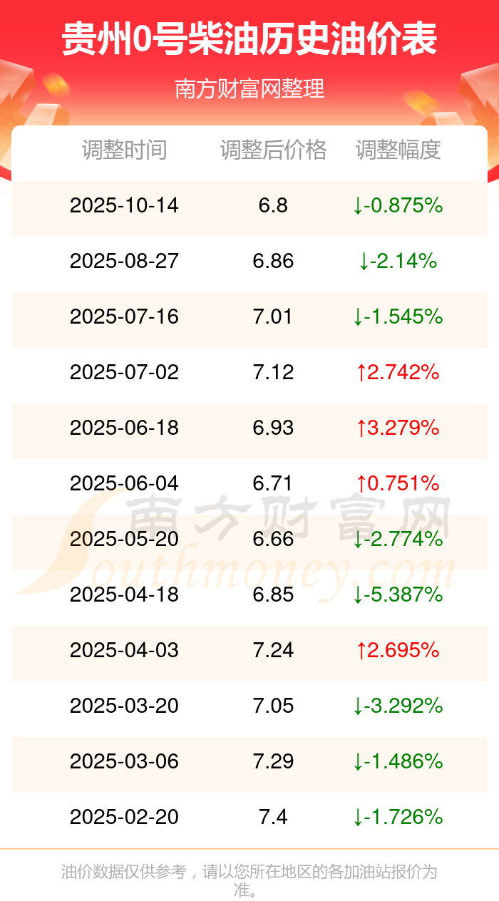 贵州0号柴油历史油价表