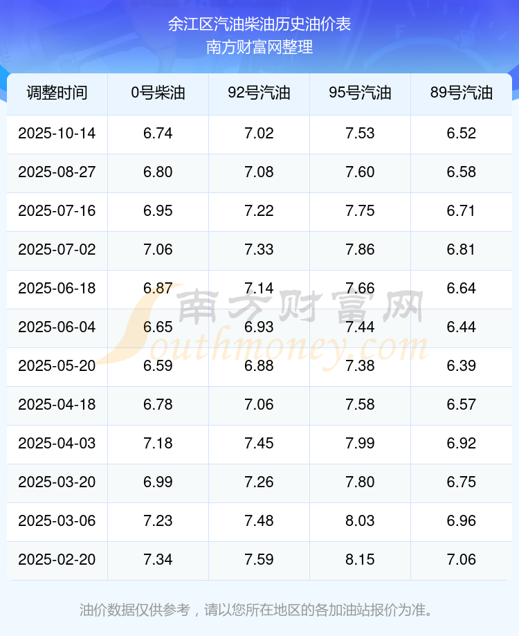 杭州萧山区今日油价查询(10月15日杭州萧山区汽油价格表) 油价网2025-10-15 10:34 今日贵州铜仁碧江区油价查询(10月15日汽油价格表一览) 油价网2025-10-15 10:32 今日海南屯昌95号汽油多少钱一升_10月15日海南屯昌95号汽油油价查询 油价网2025-10-15 10:27