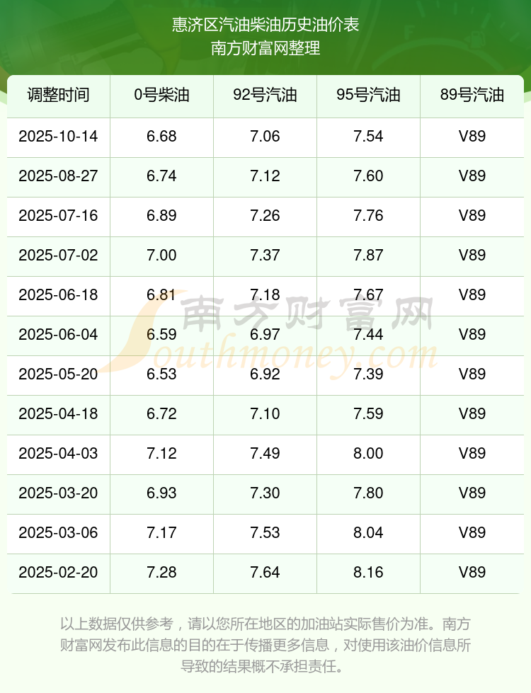 惠济区油价今日价格,汽油柴油价格一览表(10月15日)