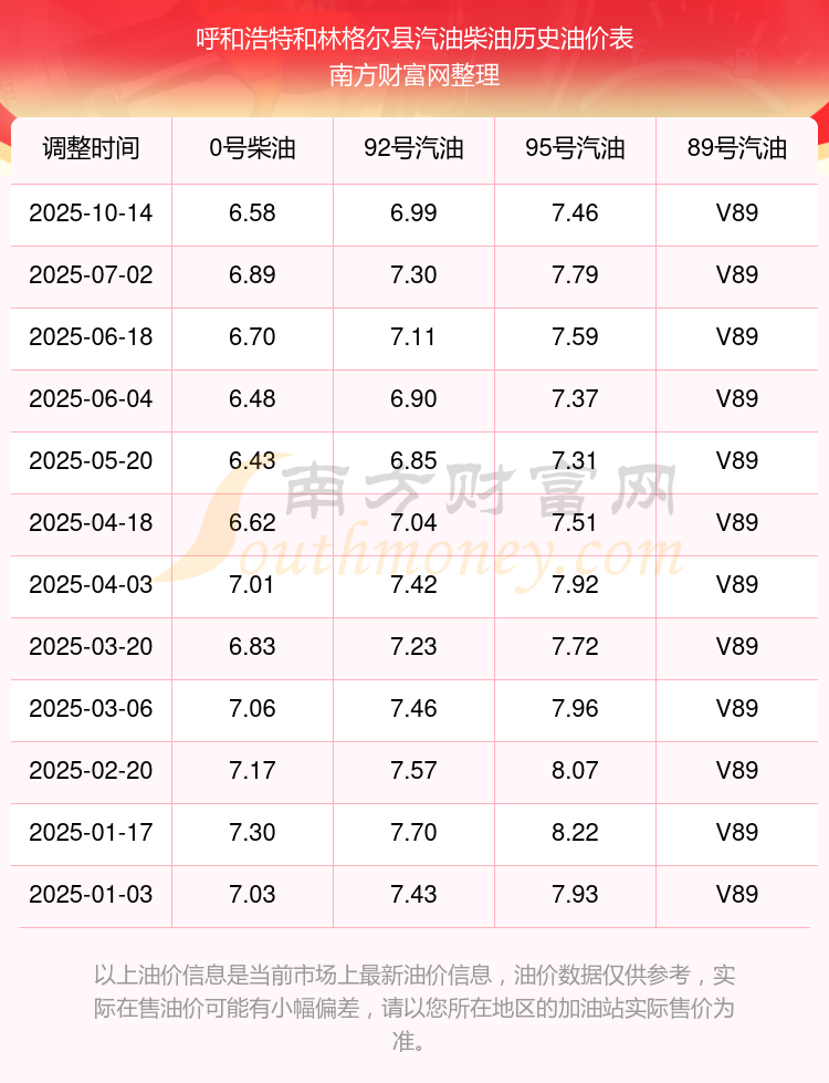 10月15日全国最新油价调整信息:10月14日调整后的95号汽油最新价格