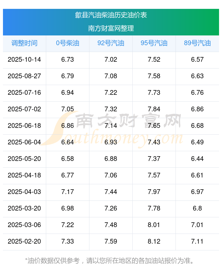 10月15日歙县汽油价格查询(歙县今日油价格)
