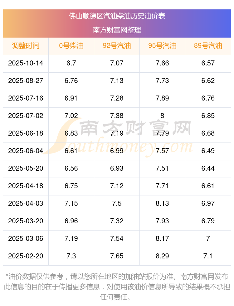 佛山顺德区油价查询_10月15日92号、95号汽油价格一览表