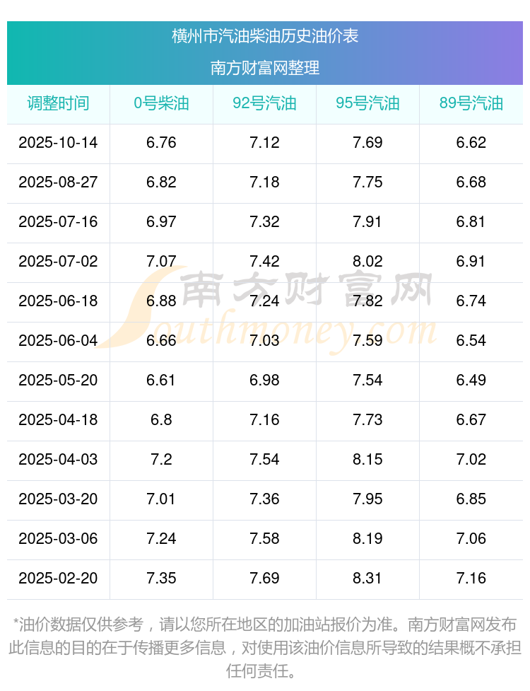 横州市今日油价查询_10月16日横州市汽油价格一览表