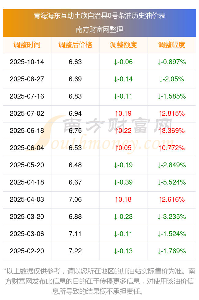 0号柴油价格查询_10月16日青海海东互助土族自治县今日0号柴油油价一览
