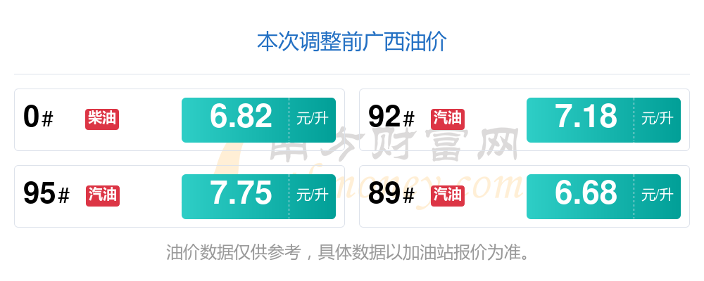 油价数据仅供参考,请以您所在地区的各加油站报价为准。