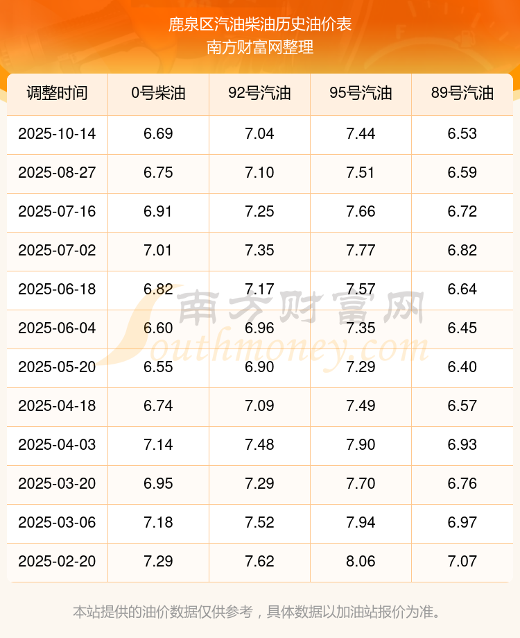 今日油价查询_鹿泉区汽油柴油价格一览表(10月17日)
