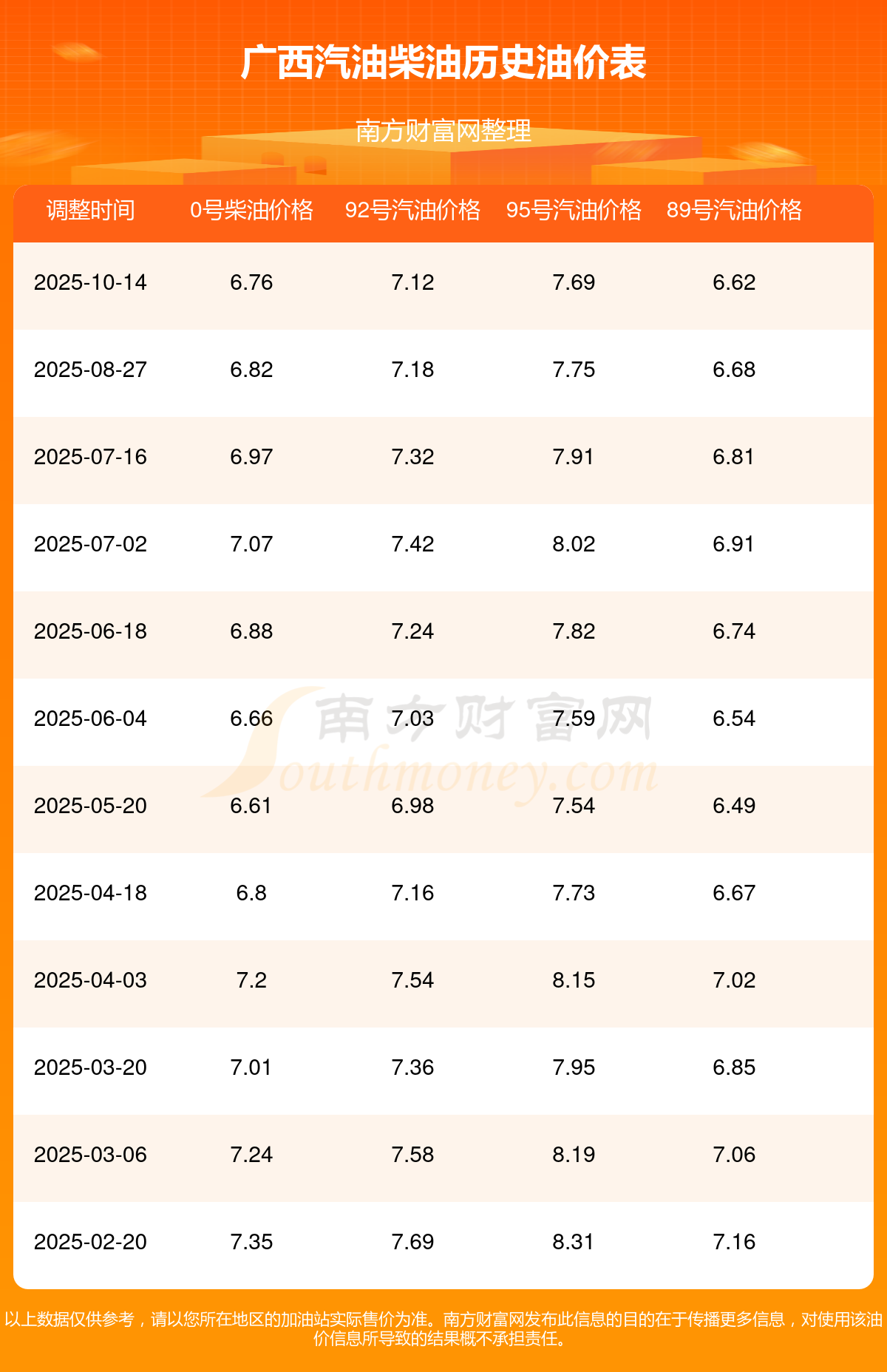10月17日92号95号汽油多少钱一升今日油价_2025年广西92号汽油价格一览表