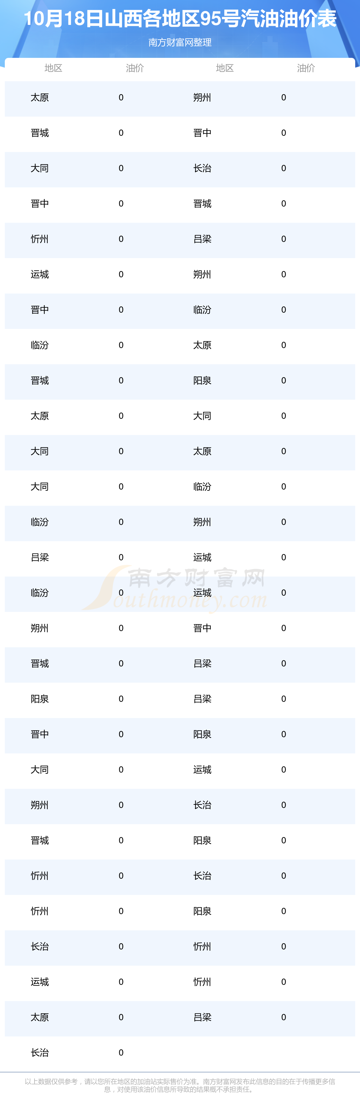 10月17日今日油价一览表,北京92,95号汽油多少钱一升?