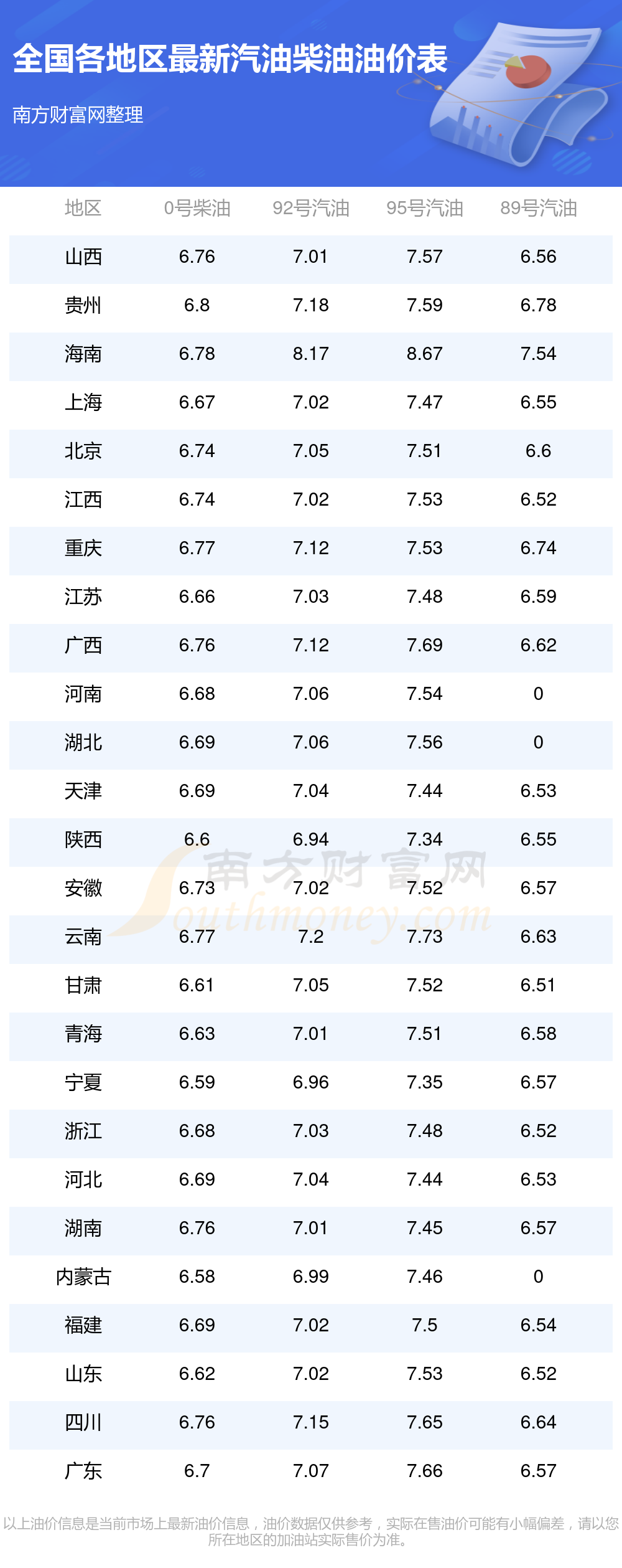 全国各地区最新油价表
