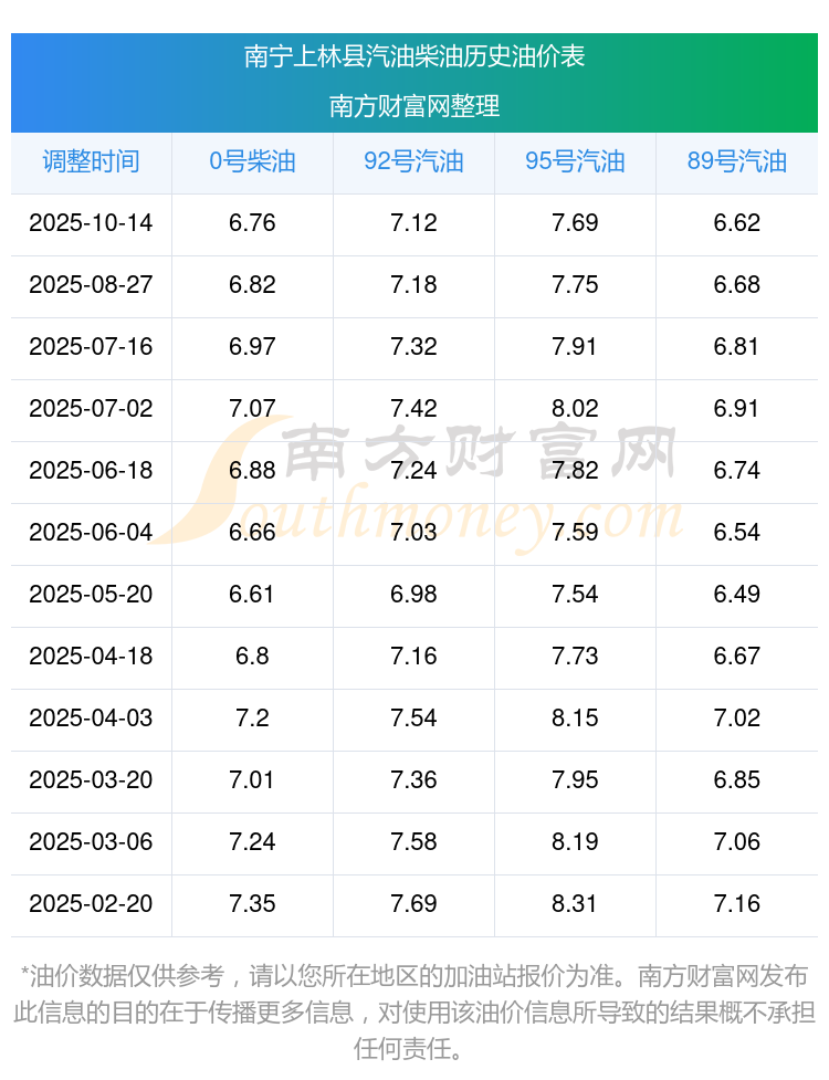 南宁上林县今日油价查询_10月18日南宁上林县汽油价格一览表