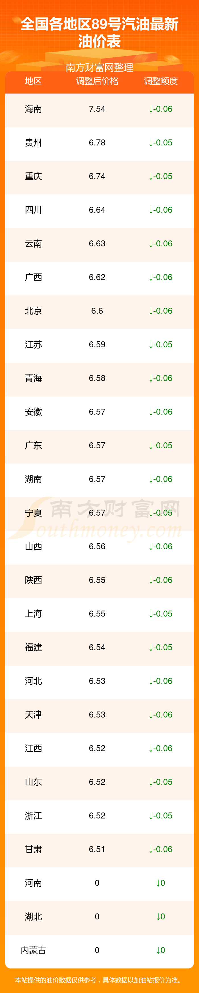 本站提供的油价数据仅供参考,具体数据以加油站报价为准。