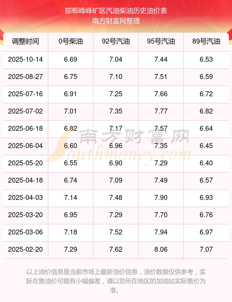 邯郸峰峰矿区92号95号汽油价格10月18日|今日油价