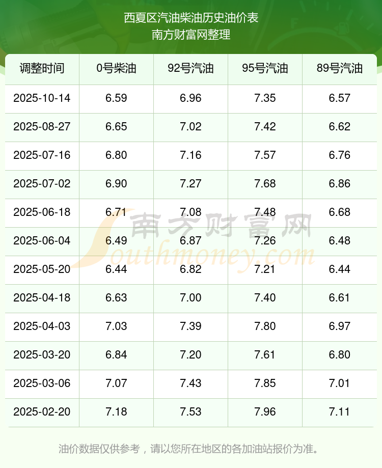 西夏区今日油价_10月18日92号、95号汽油价格(多少钱一升)