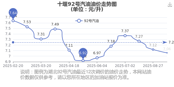 十堰92号汽油历史油价走势图