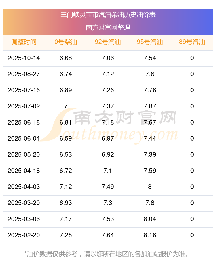 10月18日三门峡灵宝市汽油价格查询(三门峡灵宝市今日油价格)