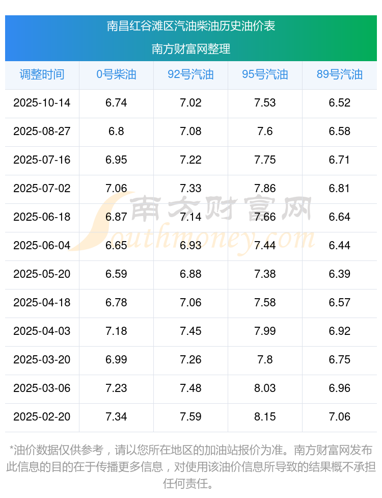 今日南昌红谷滩区汽油价格一览表(10月18日)