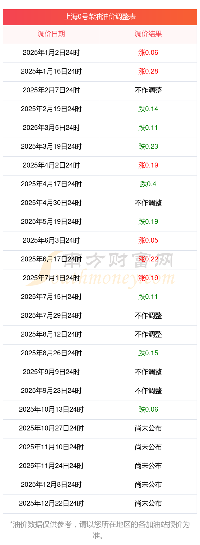 2025年油价调价窗口日期表:
