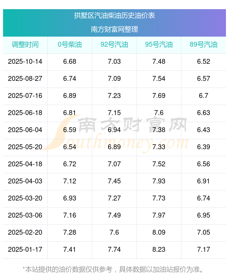 拱墅区今日油价多少钱一升_今天的汽油价格查询(10月18日)