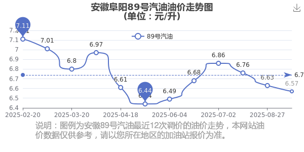 安徽阜阳89号汽油历史油价走势图