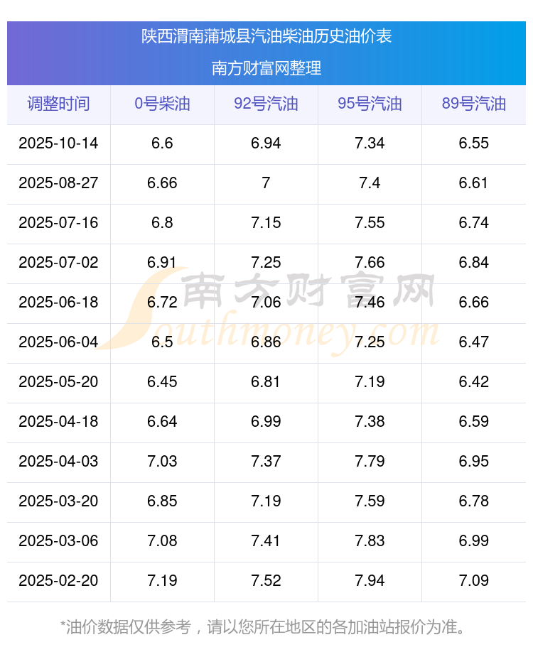 陕西渭南蒲城县油价今天多少钱一升_10月18日汽油价格多少
