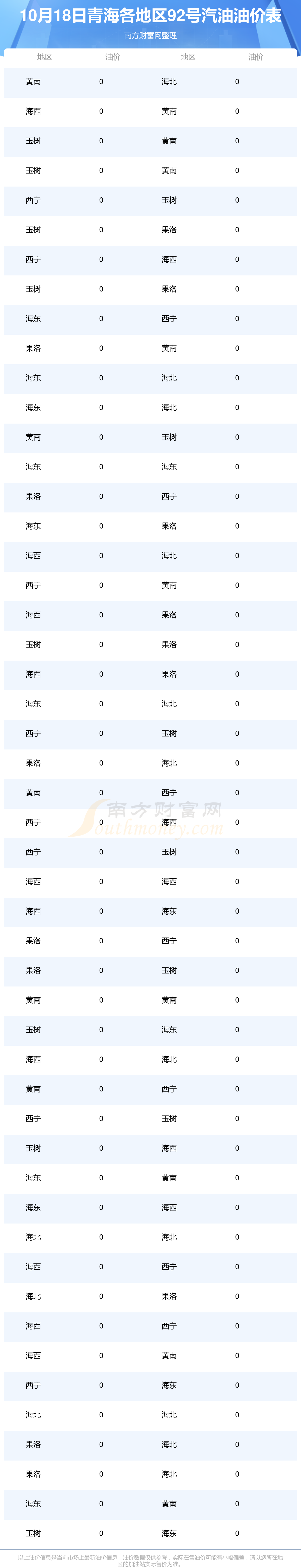今日10月18日油价-青海最新92号95号汽油价格柴油价格
