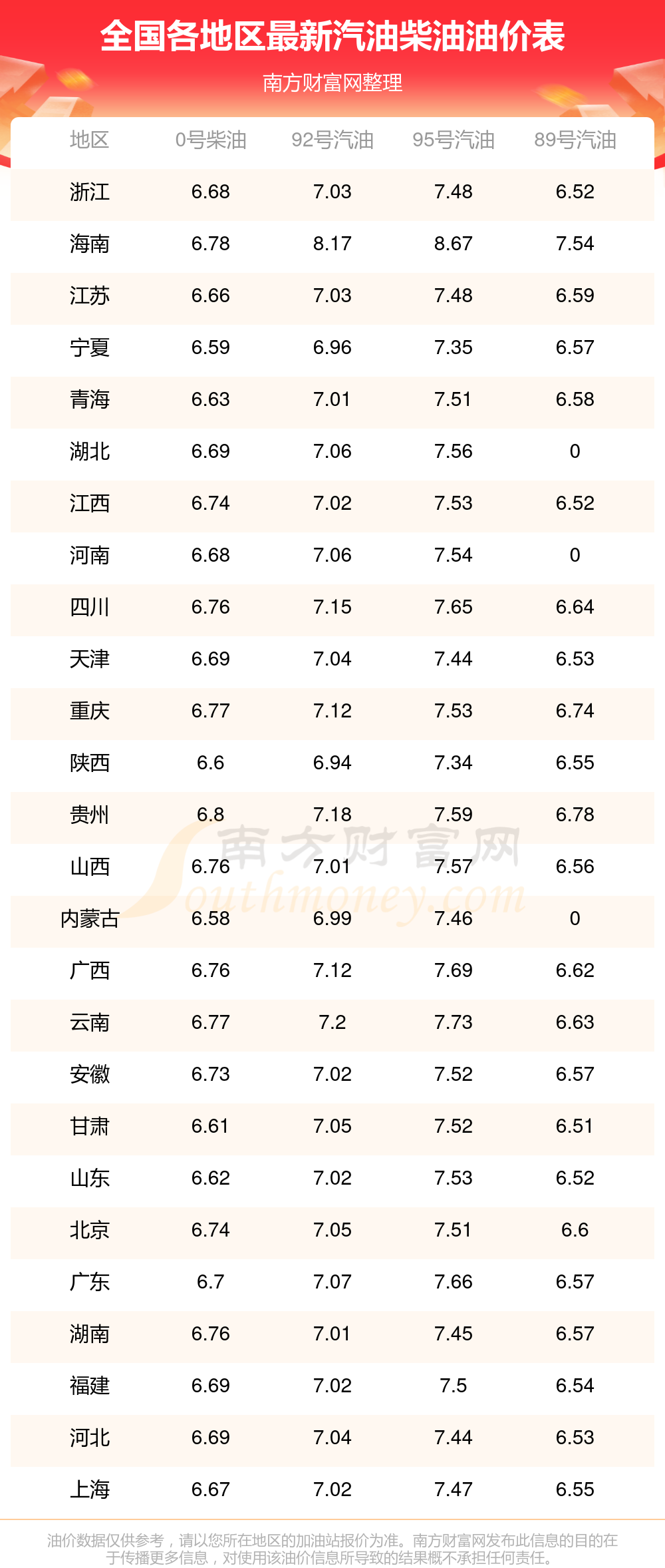 2025年最新国内各地最新油价一览,10月18日今日92号汽油价格查询