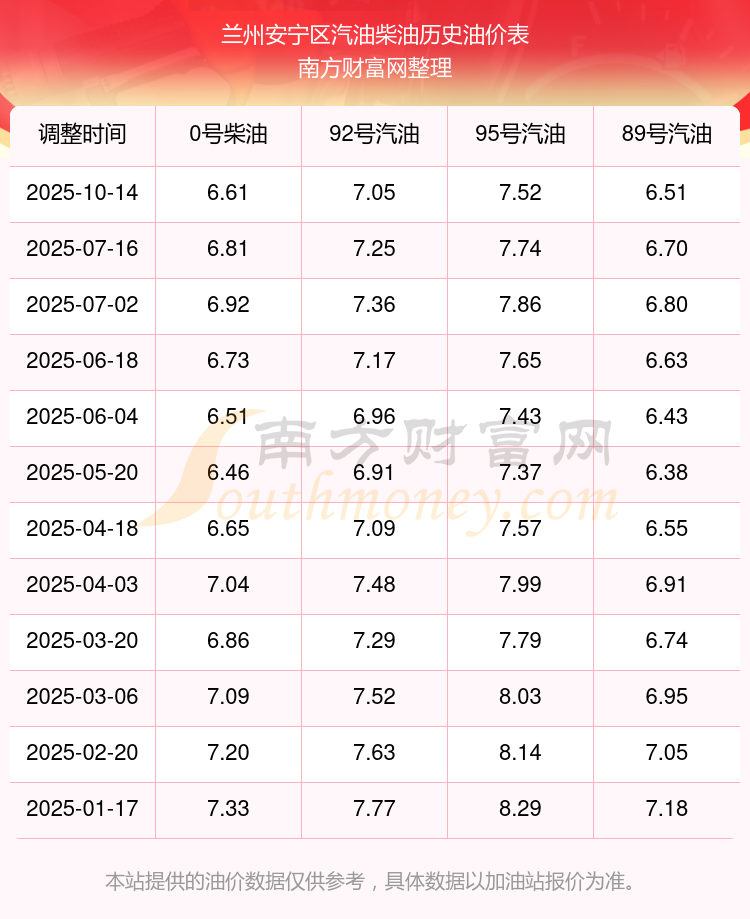 今日兰州安宁区油价查询(10月18日92号、95号汽油价格一览)