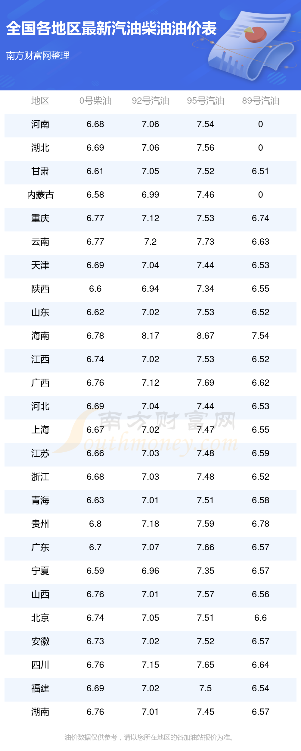 油价数据仅供参考,请以您所在地区的各加油站报价为准。