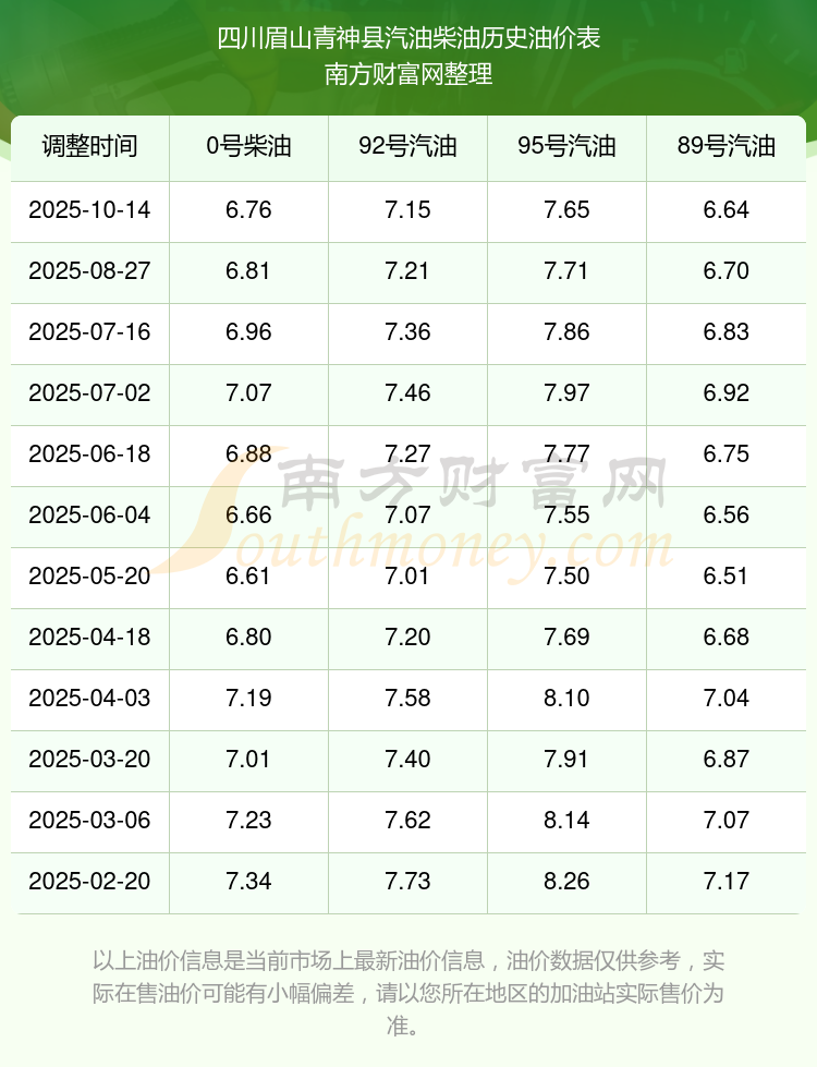 四川眉山青神县今日油价_10月18日四川眉山青神县汽油多少钱一升?