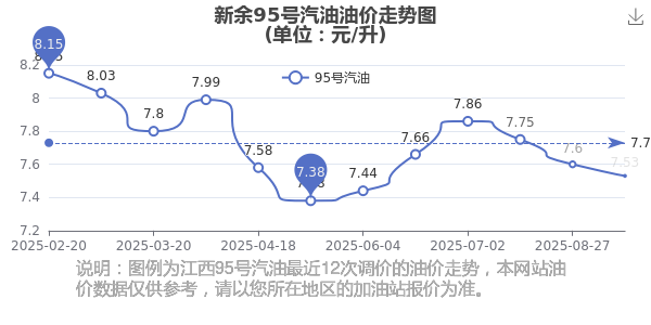 新余95号汽油历史油价走势图