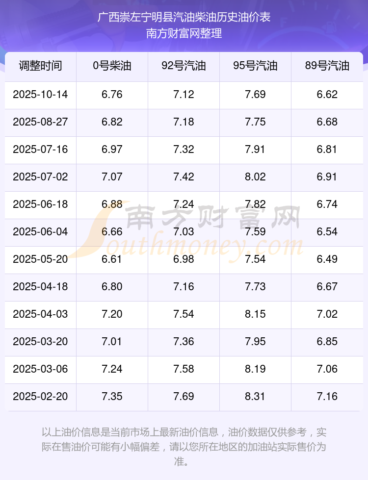 广西崇左宁明县今日油价多少钱一升_今天的汽油价格查询(10月18日)