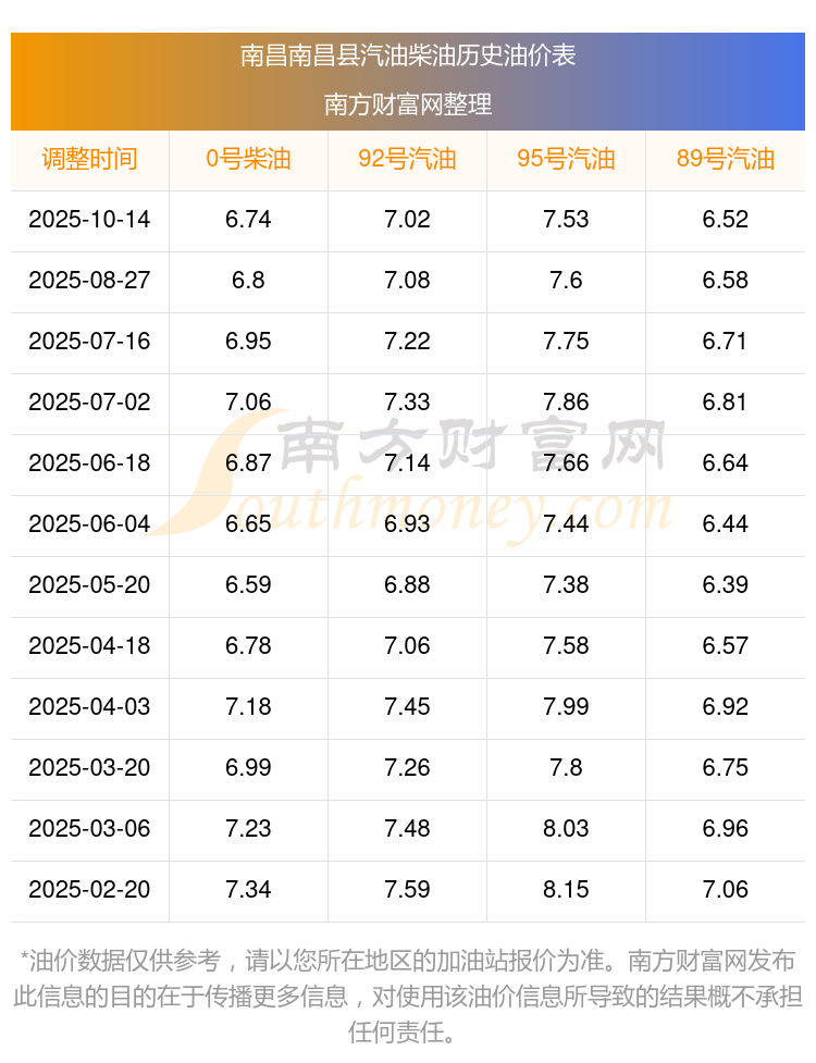 今日南昌南昌县油价:10月18日92号、95号汽油价格多少钱一升
