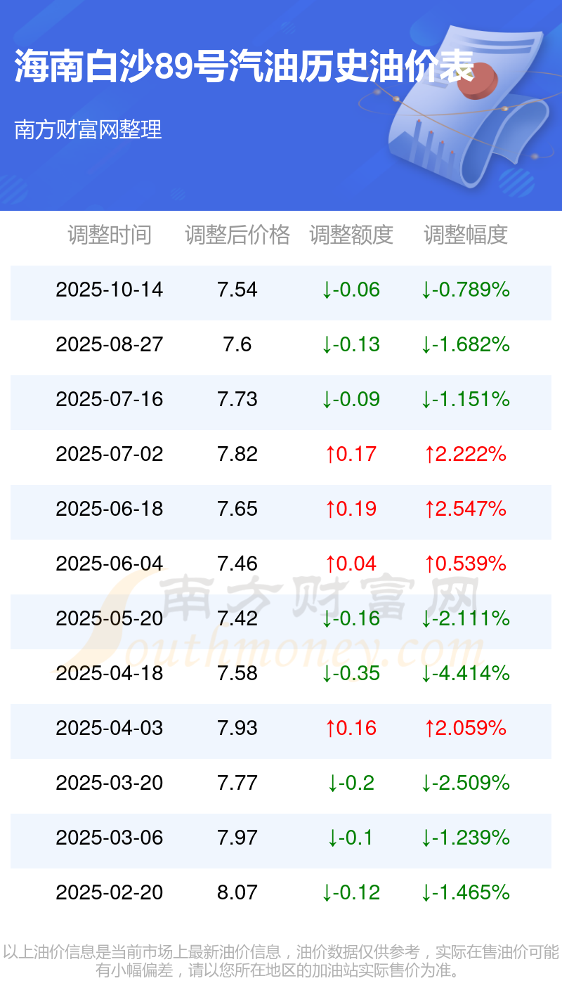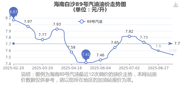 海南白沙今日油价:10月18日海南白沙89号汽油油价表一览