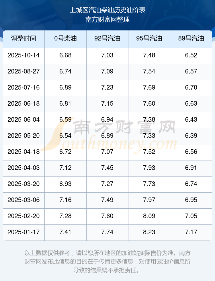 上城区汽油柴油油价,今日汽油柴油价格查询(10月19日)