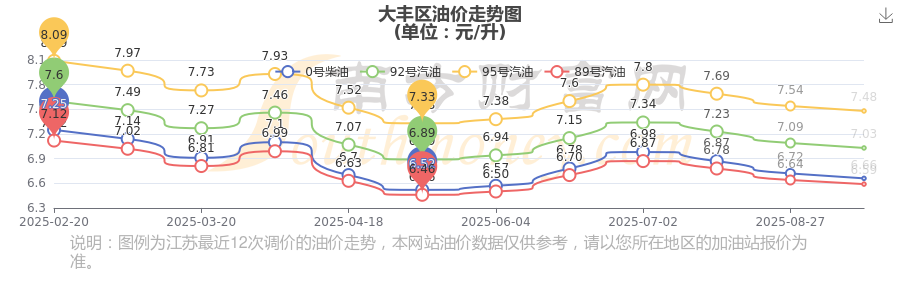 大丰区油价今日价格表(10月19日大丰区油价查询)