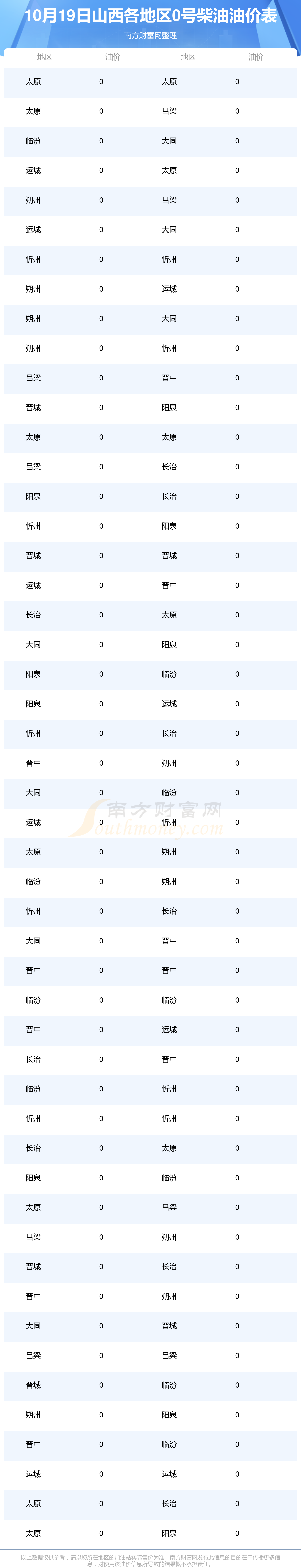 10月19日0号柴油价格查询、多少钱一升?今日国内油价0号柴油
